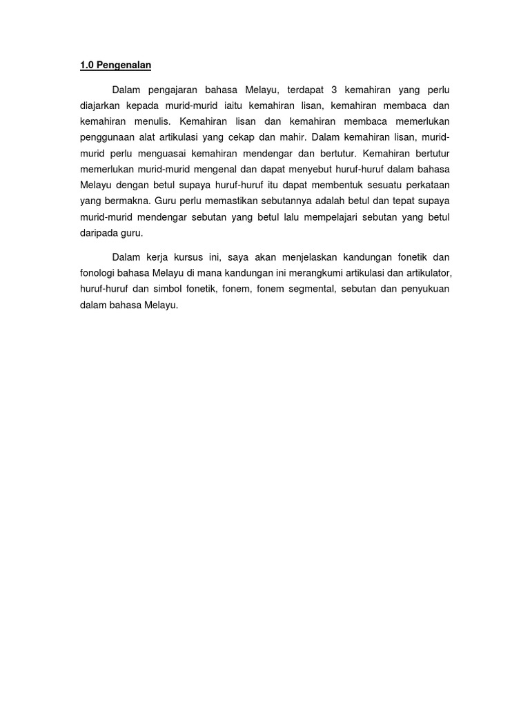 Contoh Latar Belakang Kerja Kursus Fonetik Dan Fonologi